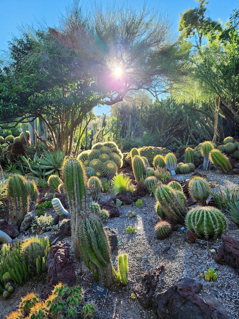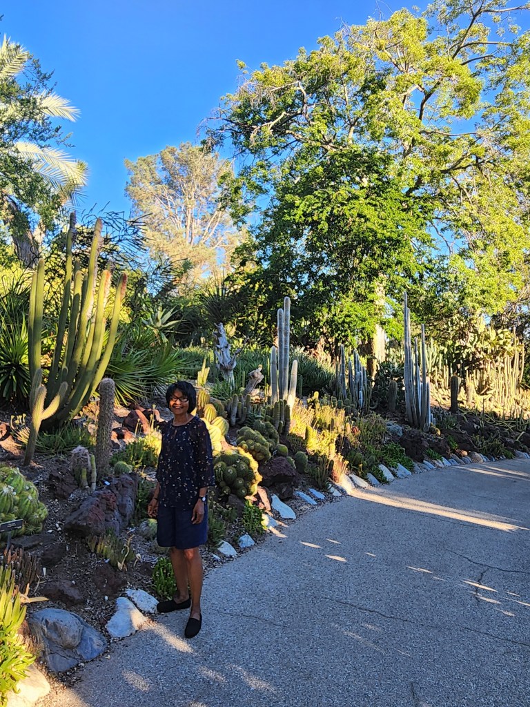 Sometimes she feels like a female version of herbologist Dr. Sebi, out and about among plants. This time at The Huntington Botanical Gardens in San Marino, California. She walks down a paved path spread down the middle of Huntington’s Desert Garden. She finds tall and majestic saguaros—on the left side and right—like the giant ones in Arizona.